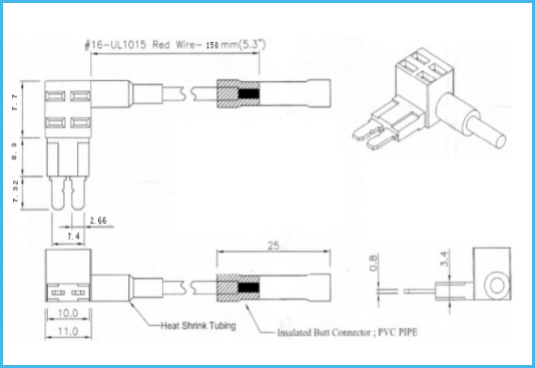 | Options Of Cable Tail | Blue insulated connection tube(cold-pressed terminal) Bullet terminal(Or White Tube) 4.8mm terminal (Or White Tube) Stripped half or completed (Tinned optional), custom made |